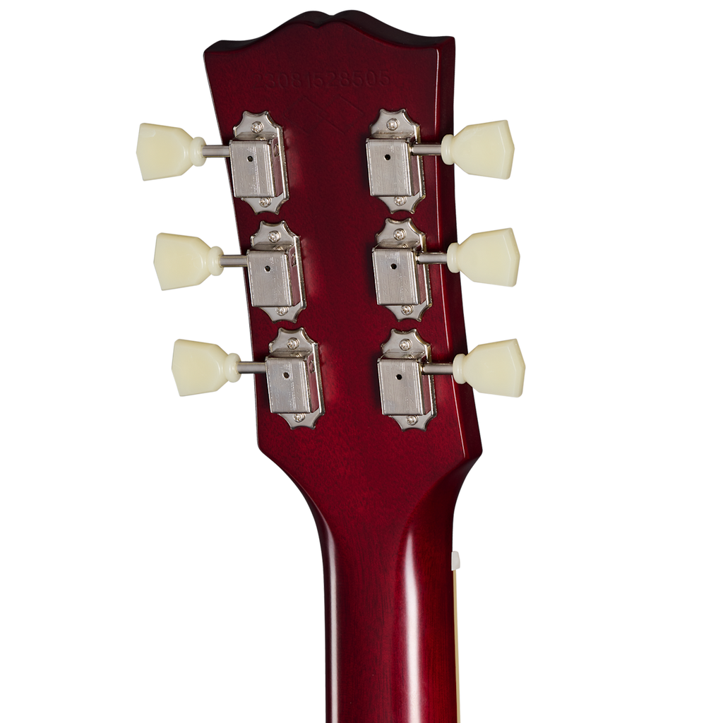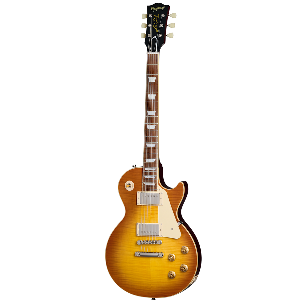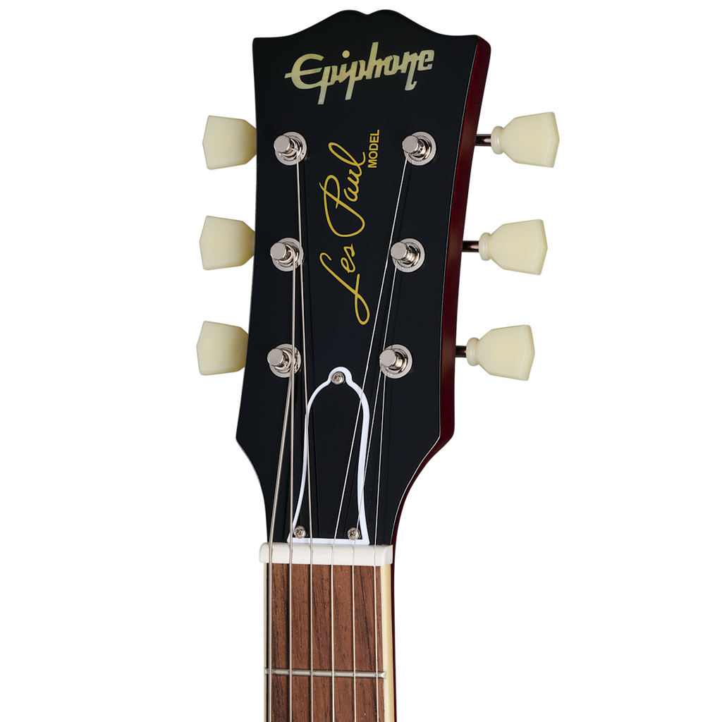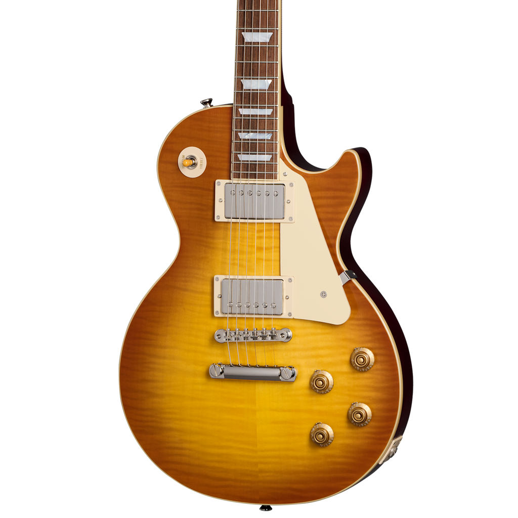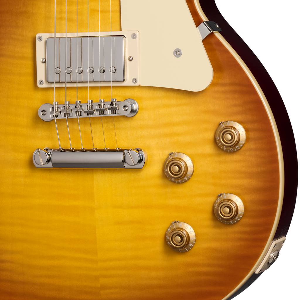 Designed for both functionality and aesthetics, the 1959 Les Paul Standard boasts a non-bevelled pickguard that complements its timeless appearance. It is equipped with new Epiphone Deluxe vintage tuners, providing excellent tuning stability and ease of use. The ABR-1 bridge and Gibson stop bar ensure optimum intonation and sustain, allowing you to unleash your creativity with confidence.