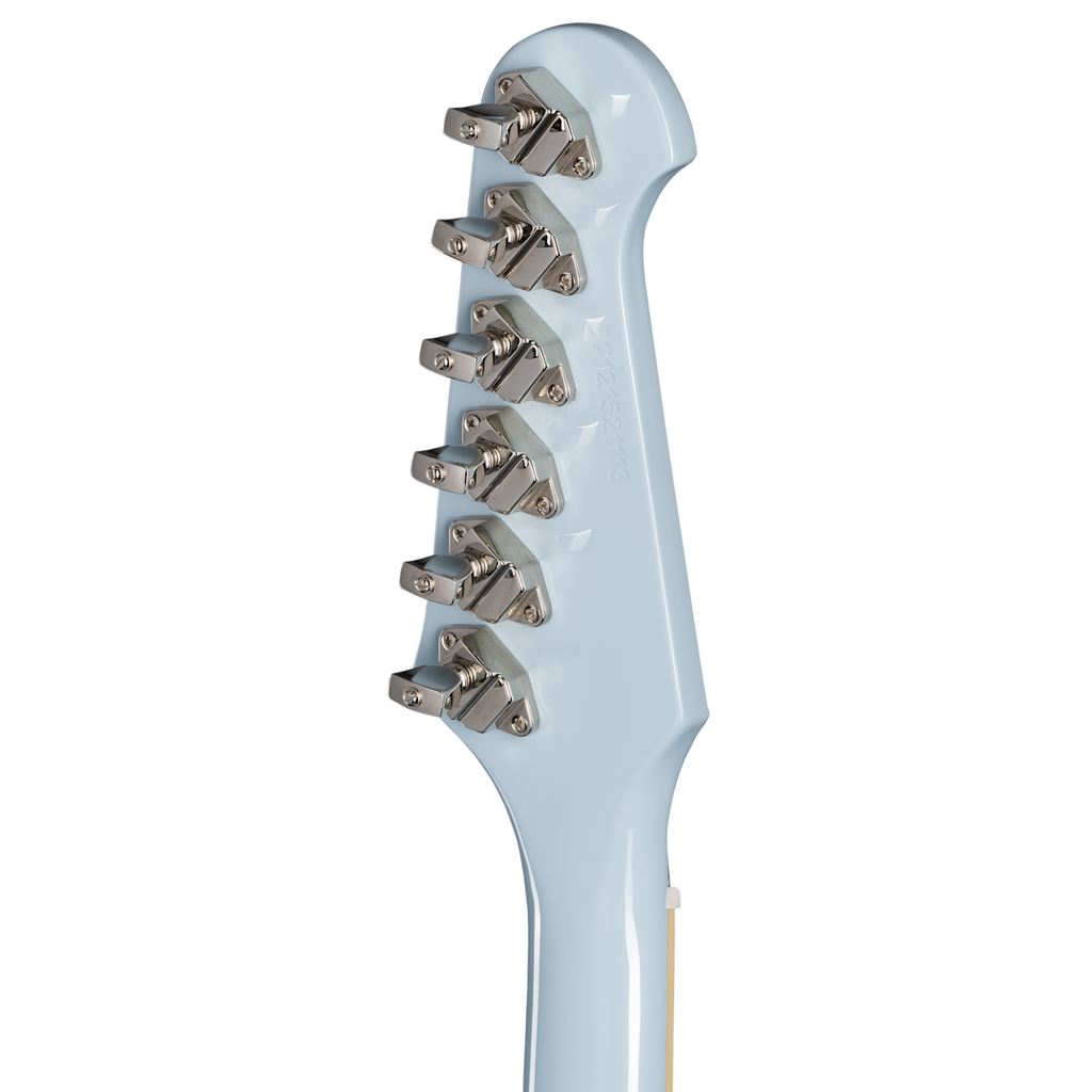 Forming part of Epiphone's ‘Inspired by Gibson Custom Collection,’ the 1963 Firebird V is Epiphone's take on one of the most instantly recognisable and quintessential electric guitar designs of the 20th century. With its distinct body shape with glued-in 9-piece Mahogany/Walnut neck with elegantly bound dark Rosewood fingerboard, the Gibson Firebird has been at the forefront of popular music from Blues to Metal.