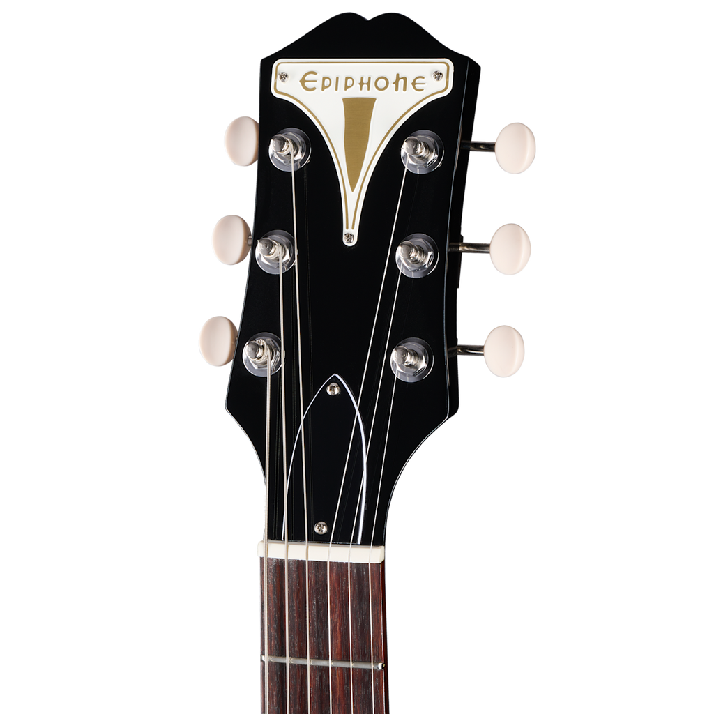 Continuing the legacy, the Epiphone Coronet features a three-on-a-side Kalamazoo headstock adorned with the iconic Epiphone Bikini badge and white button tuning machines. The attention to detail is evident in every aspect, from the exquisite white 1958/59 spec pickguard to the meticulously crafted Indian Rosewood fretboard with a comfortable radius and 22 medium jumbo frets.