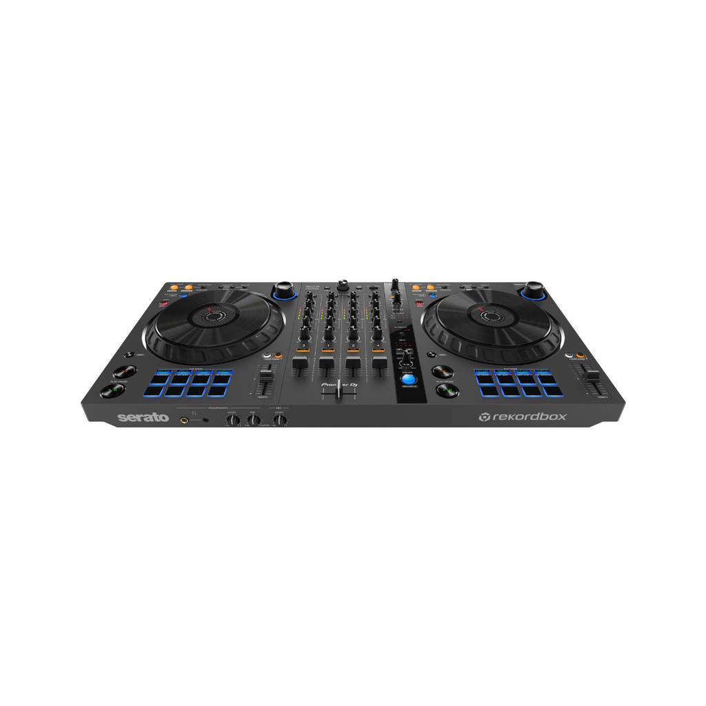 The fresh design of the DDJ-FLX6-GT introduces a new look and feel for its full-size jog wheels, which feature a graphite color plus a metallic texture on top and a rubberized coating on the outer ring for improved playability. The new unit adds support for VirtualDJ (license available separately), and retains free compatibility with rekordbox and Serato DJ Pro. TRAKTOR PRO 3 is available to use by downloading its mapping files.