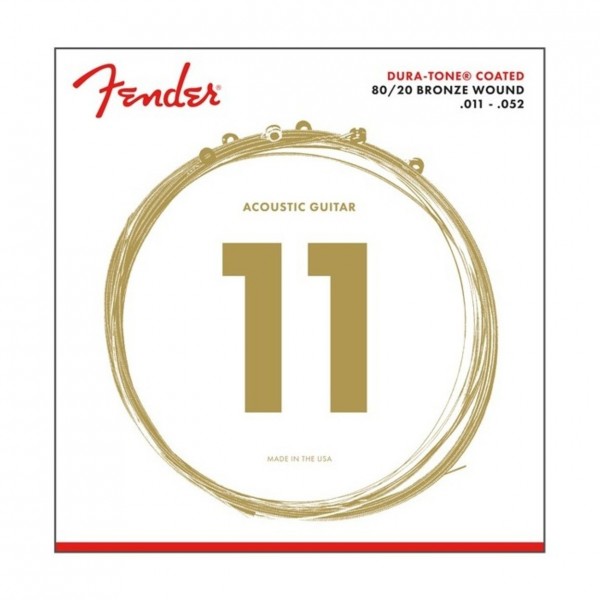 Fender's Dura-Tone coating adds resilience and longevity with a layer of coating bonded to a 80/20 bronze wound (80% copper and 20% zinc) wrap wire