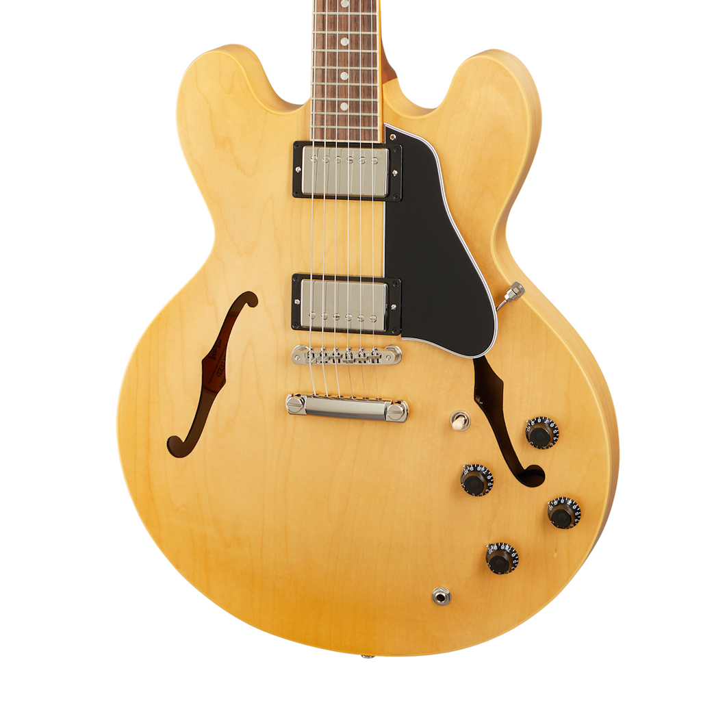 The Gibson ES-335 DOT is the cornerstone of the Gibson ES line-up. From its inaugural appearance in 1958, the Gibson ES-335 set an unmatched standard. The pearloid dot inlay rosewood fingerboard on a hand-rolled Rounded "C" mahogany neck remind players where it all started. Gibson's Calibrated T-Type humbucking pickups are paired with our hand-wired control assembly. The result is that versatile Gibson ES tone that players have craved for over 60 years. Tuning stability and precise intonation are provided by the Vintage Deluxe tuners with Keystone buttons, paired with light weight Aluminum ABR-1 bridge and Stop Bar tailpiece, anchored by steel thumb-wheels and tailpiece studs.